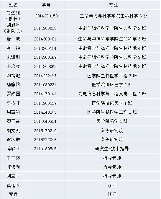 iGEM竞赛为本科生合成生物学的顶级竞赛。本年度全球共有来自三十多个国家的两百多支队伍参赛,世界名校哈佛大学、MIT、牛津大学、剑桥大学等悉数参赛。iGEM竞赛为教务部学科竞赛支持项目。深大本届队伍在学校教务部、国际交流与合作部、校友联络部、校友企业正中投资集团的支持下于2015年11月开始招新组队,团队14名成员分别来自生命与海洋科学学院、医学院、高等研究院、光电工程学院。参赛项目为《产氢魔术师-利用光控调控莱茵衣藻持续产氢》。在一年的参赛历练过程中,团队成员各有所长、团结互助,完成了一系列的挑战。从头脑风暴到设计实验项目,从实验室到深入工厂农村等地进行社会实践,到赴台湾广州参加各种学术交流会议等,都表现十分优异。虽然竞赛过程中遇到很大的困难,队伍成员面对挫折依然意志坚定,勇往直前,在赛场上积极主动,展现了深大学子的良好风貌。