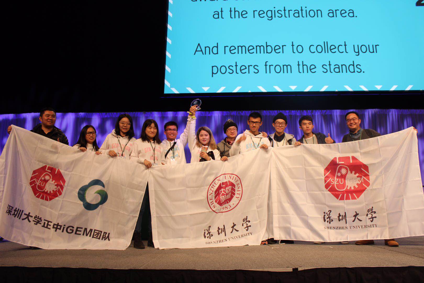 热烈祝贺及衷心感谢各位获奖的师生!祝愿大家再接再厉,再创辉煌!希望生科院等深大学子,以深圳大学iGEM团队为榜样,刻苦钻研,不畏强手,勇创佳绩,一起携手,为高水平大学建设添砖加瓦!