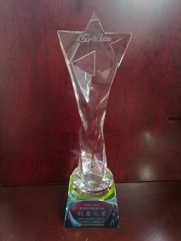 2016年11月12日,首届全国基因应用创意大赛在深圳市盐田区举办。该竞赛由深圳市科学技术协会主办,华大基因及蓝色彩虹承办。本次比赛吸引了全国几十所高校超过600位选手参与角逐,来自复旦大学、武汉大学、上海交通大学、湖南大学、深圳大学等知名高校的18支科研团队通过初赛、复赛的层层选拔,最终入围总决赛。生科院有三支队伍闯入决赛,其中由陈伟钊老师指导的两支团队获得商业创意组最高奖-全国创意之星(奖金5万元)及应用创意组优胜奖(奖金5千元)。