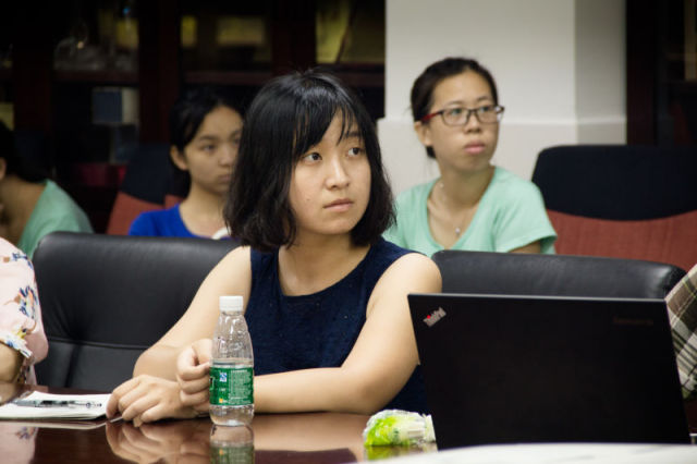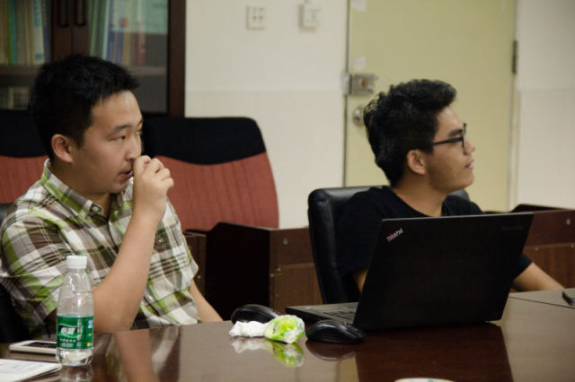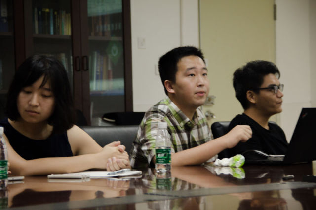骄阳似火、天气酷热,正如队员们心里对此次交流过程中知识的碰撞融合的期待一般。大汗淋漓的客人们陆续坐定后,交流会议便由第三届队伍的带队老师和队长主持开始。简单了解各自队伍今年的参赛情况之后,交流活动到了核心环节-各自队伍开始自己项目的介绍与讲解,并由其他人进行提问。这个过程中队员们认真讨论积极思考。