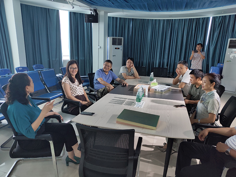 北海市黑珍珠海洋生物生物科技有限公司负责利用微藻开发系列化妆品,特别是利用螺旋藻、小球藻及红球藻等微藻活性物质提取物,开发绿色保健化妆品。李应坤董事长和王湘华经理向项目组介绍了合作研究任务进展情况,并展示了企业发展规划及相关产品。