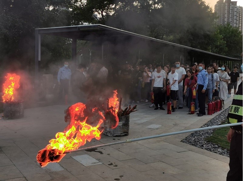 培训结束后,演练师生全部沿消防疏散通道安全撤离至A5楼下,在中航物业组织下进行“灭火现场实操演练”。所有师生都学会使用灭火器灭火。
