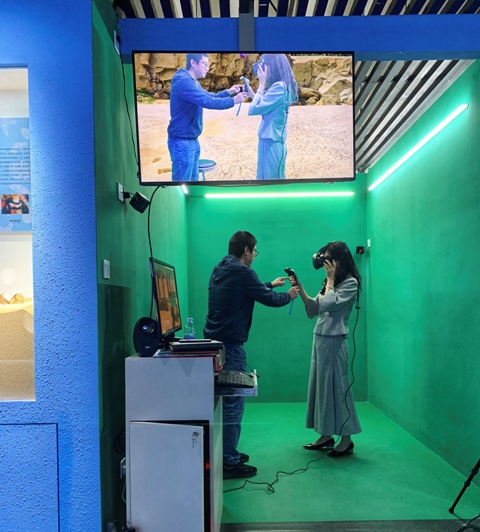 会后,来宾参观了我院A5教学实验楼及海洋展览馆,王新燕院长还体验了我院海洋展览馆的VR教学资源。