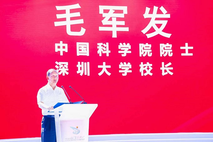 广东省委教育工委书记,省教育厅党组书记、厅长朱孔军闭幕式致辞 中国科学院院士、深圳大学校长毛军发代表深圳大学对全体参赛团队取得佳绩表示祝贺。他表示,作为地处粤港澳大湾区和中国特色社会主义先行示范区的高校,深圳大学建校40年来将敢闯会创、改革创新的理念融入血液,致力于为国家培养高水平的创新创业人才,引领社会的进步和发展。毛军发说,在比赛过程中,各参赛团队集中展示了广东“双创”教育的丰硕成果,深圳大学有幸学习到各兄弟院校的优秀经验,必将共同开启创新创业教育改革的新征程。
