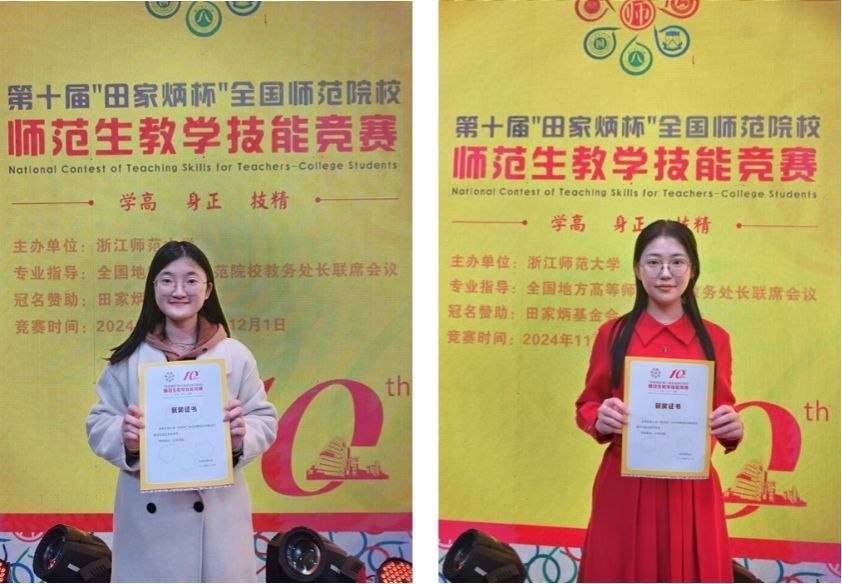 在决赛中,我院两位选手充分展现了扎实的专业素养和良好的精神风貌,在2小时内完成了高质量的教学设计和PPT,并出色地完成了3分钟的即席讲演和10分钟的模拟授课。最终,李秋芬同学荣获高中生物组一等奖,林烨蓥同学荣获初中科学组二等奖。