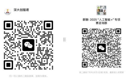 有意向报名的同学请务必扫描加入下方咨询群,方便后续联系(链接失效时可添加“深大创服君”微信,添加时备注来意)。