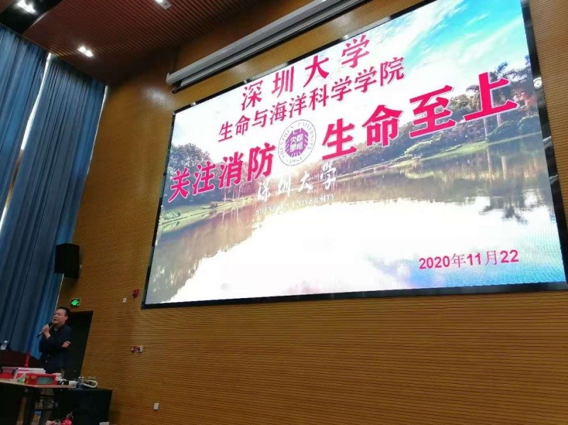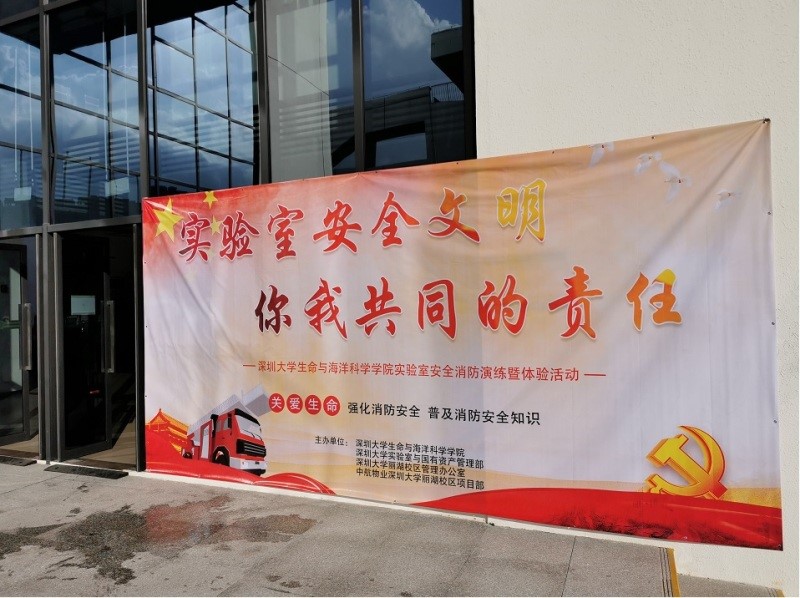 为切实做好我院消防安全工作、强化消防安全意识、普及消防安全知识、提高师生应对突发事件的处置能力,生命与海洋科学学院联合丽湖校区管理办、实验室与国有资产管理部以及中航物业丽湖校区项目部于2020年11月22日开展了实验室消防安全演练活动。本次活动参加对象为生命与海洋科学学院2020级所有本硕博新生及新进教师、博后。生命与海洋科学学院党委书记梁杰、副院长谢宁,学院实验中心主任陈伟钊、副主任陈俊,学院实验室安全巡查小组徐驰老师、吴圳添老师以及丽湖校区管理办安全保卫部苏伟强老师一同参与活动。