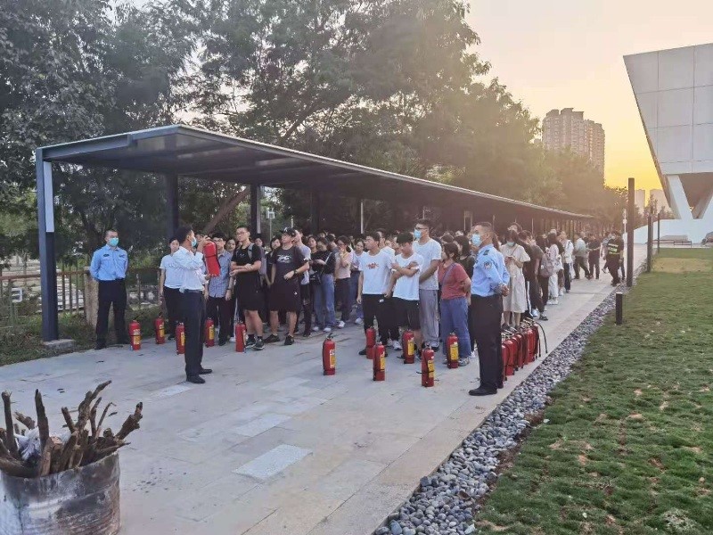 培训结束后,演练师生全部沿消防疏散通道安全撤离至A5楼下,在中航物业组织下进行“灭火现场实操演练”。所有师生都学会使用灭火器灭火。